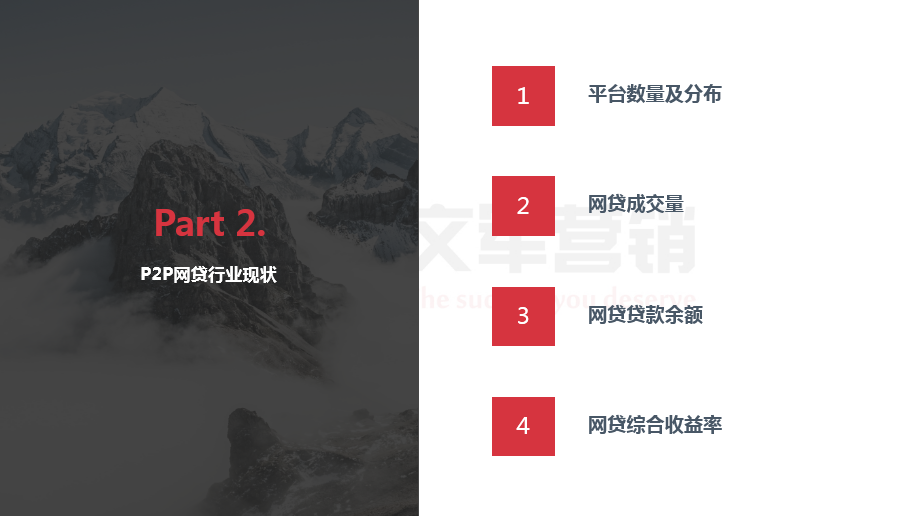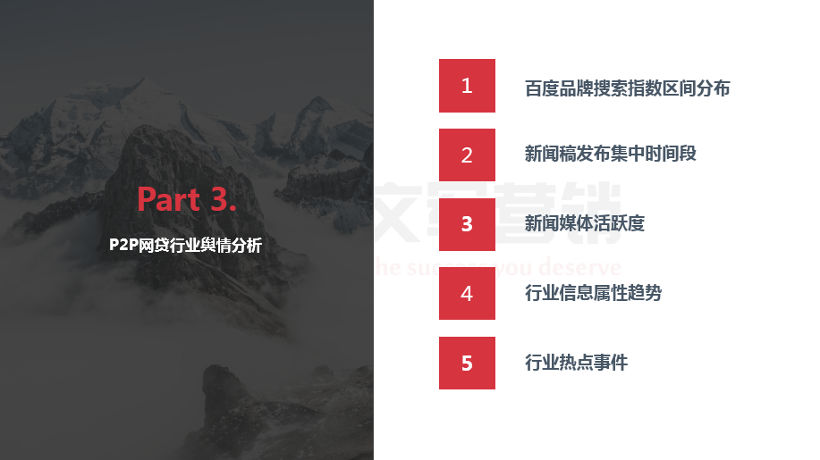 2017年9-11月網(wǎng)絡借貸行業(yè)營銷調(diào)研報告由文軍營銷收集整理制作,本報告包含了p2p網(wǎng)貸宏觀環(huán)境分析、p2p網(wǎng)貸行業(yè)現(xiàn)狀分析、p2p網(wǎng)貸行業(yè)輿情分析、p2p網(wǎng)貸行業(yè)seo分析以及p2p網(wǎng)貸行業(yè)未來趨勢分析。以下是報告全部內(nèi)容,敬請觀看!