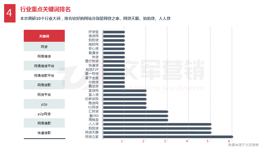 以上就是文軍營銷2017年9-11月網(wǎng)絡借貸行業(yè)營銷調(diào)研報告的全部內(nèi)容了,如有建議請掃描上面圖片里的二維碼與我方互動,想了解更多文軍營銷的產(chǎn)品信息可以登錄文軍官網(wǎng)查看!